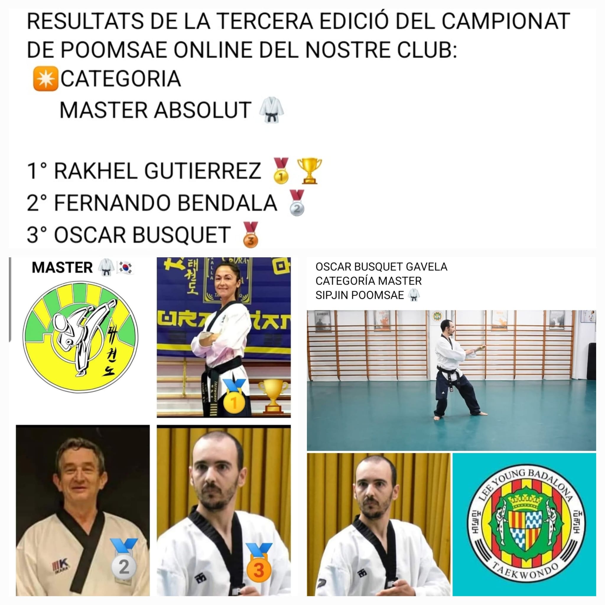 El fin de semana del 26 y 27 de marzo, nuestro alumno Óscar Busquet participó en el 3r Campeonato de pumses online organizado por TKD+TORDERA.